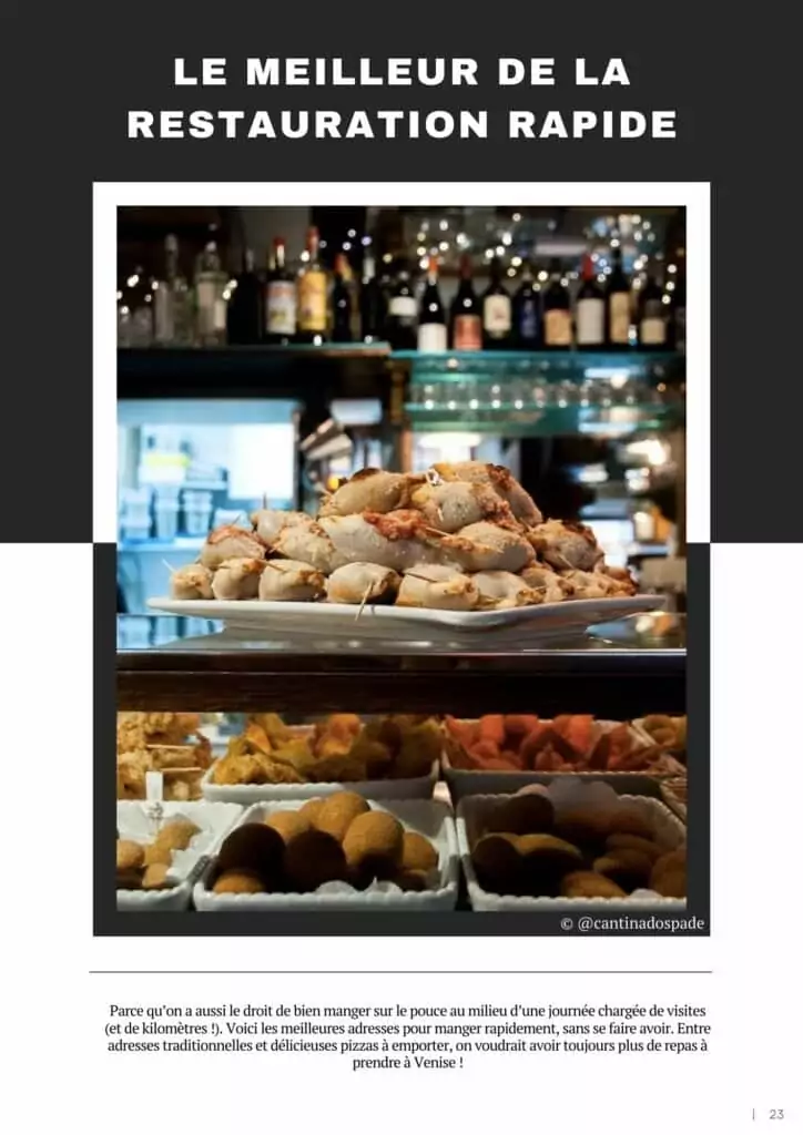 Vous l’aurez compris, bien plus qu’un simple guide sur les restaurants de Venise, vous retrouverez à l’intérieur bien d’autres types d’établissements où il fait bon manger à toute heure du jour ou de la nuit. Parce que c’est aussi ça, profiter de Venise !
